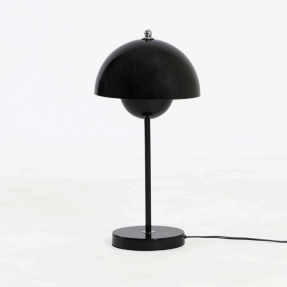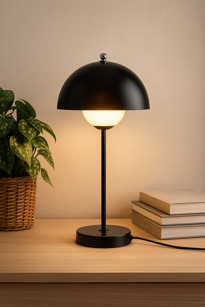 اباجورة طويلة المزودة بحامل معدني مزين من الأعلى قبعة اسطوانية من المعدن الذي يضفي لمسة من التميز على التصميم.