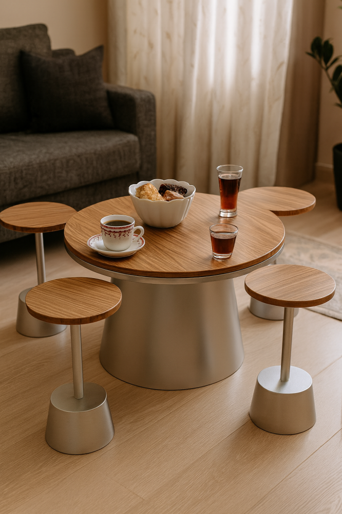 أضيفي مظهرًا جماليًا عصرياً لمنزلك مع هذه الطاولة ذات الطراز الحديث، المصنوعة ، من معدن عالي الجودة، مما يوفر الصلابة والمتانة العالية ويضمن استدامته لفترة طويلة مطلي ببوية الفرن و الرف يتكون من الخشب و شكله يكون حسب اختيارك ، مع إمكانية ادخال طاولات الخدمة في الطاولة الكبيرة للاستفادة من المساحة لديك.