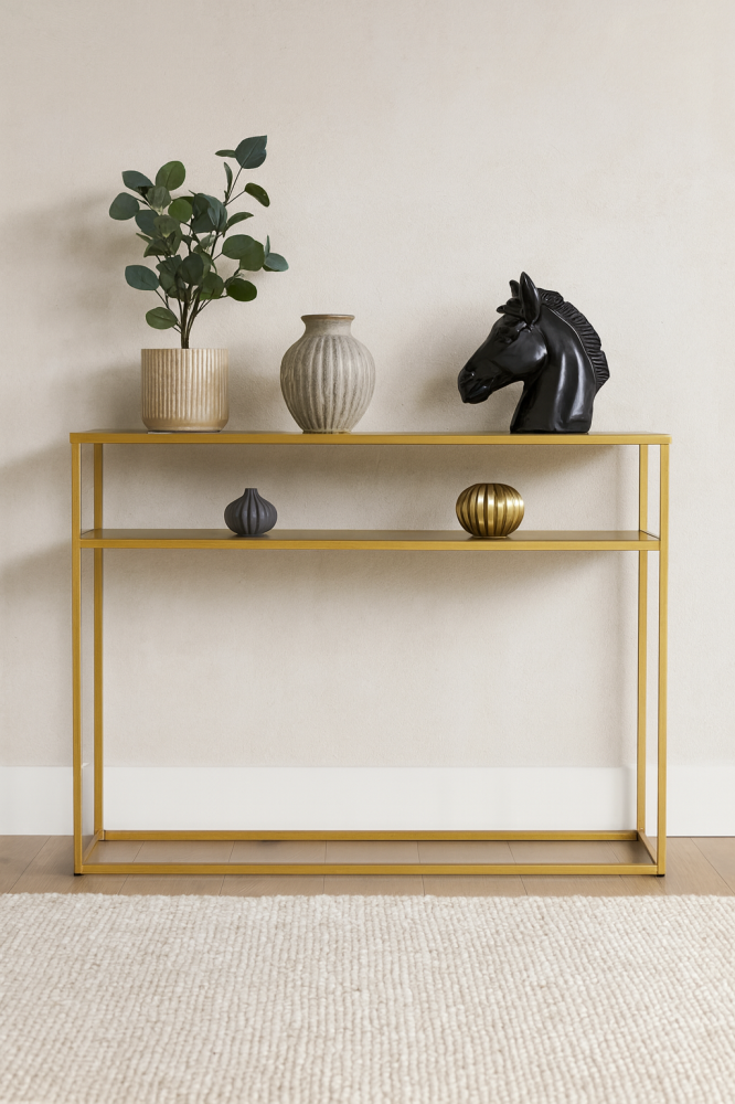 أضيفي لمسة أنيقة الى مدخل منزلك مع طاولة مدخل هذه الرائعه ، بتصميم مميز بهيكلها المصنوع من المعدن الصلب ، مصنوعة من خامات عالية الجودة لضمان الاستدامة والتحمل ، المنتج الطاولة لوحدها فقط