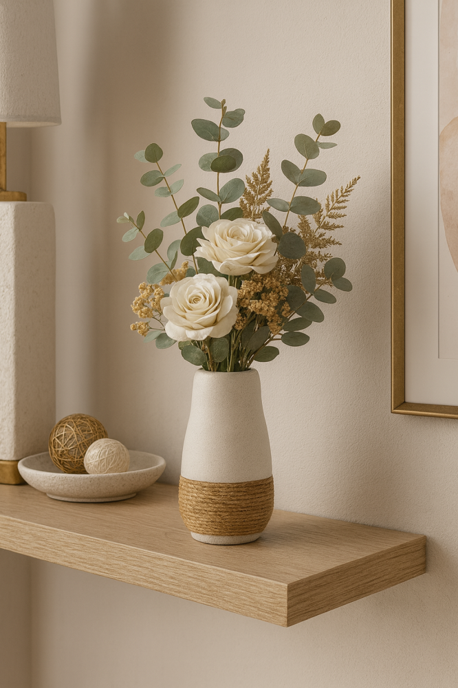 تم تصميم هذه الفازة الأنيقة من السيراميك بطابع عصري لإضفاء بصمة من الحيوية لديكور منزلك ، مصنوعة بتشطيب جذاب يجعلها تبدو أكثر سحرا مع تنسيق الأزهار الصناعيّة الجميلة ، مصنوعة من خامات ذات جودة عالية ، لتعزّز من جمال ديكوركِ، ويمكنكِ الاهتمام بها وتنظيفها بسهولة .