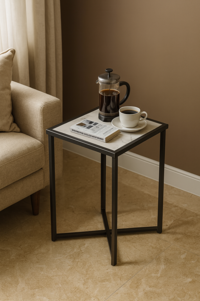 One serving table, metal legs coated with oven paint and the shelf is made of wood and its shape is according to your choice.