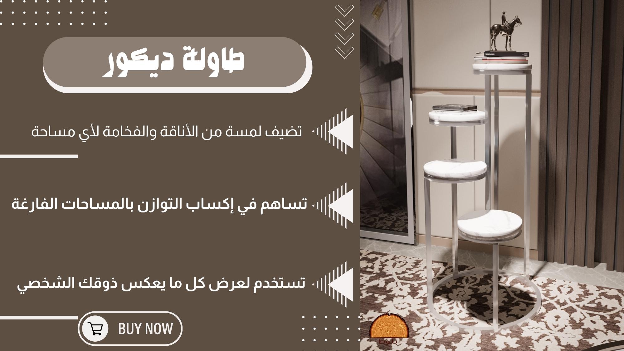 - A decorative table is an important element during occasions and celebrations to display seasonal decorations or a vase that shines on one of the table shelves.