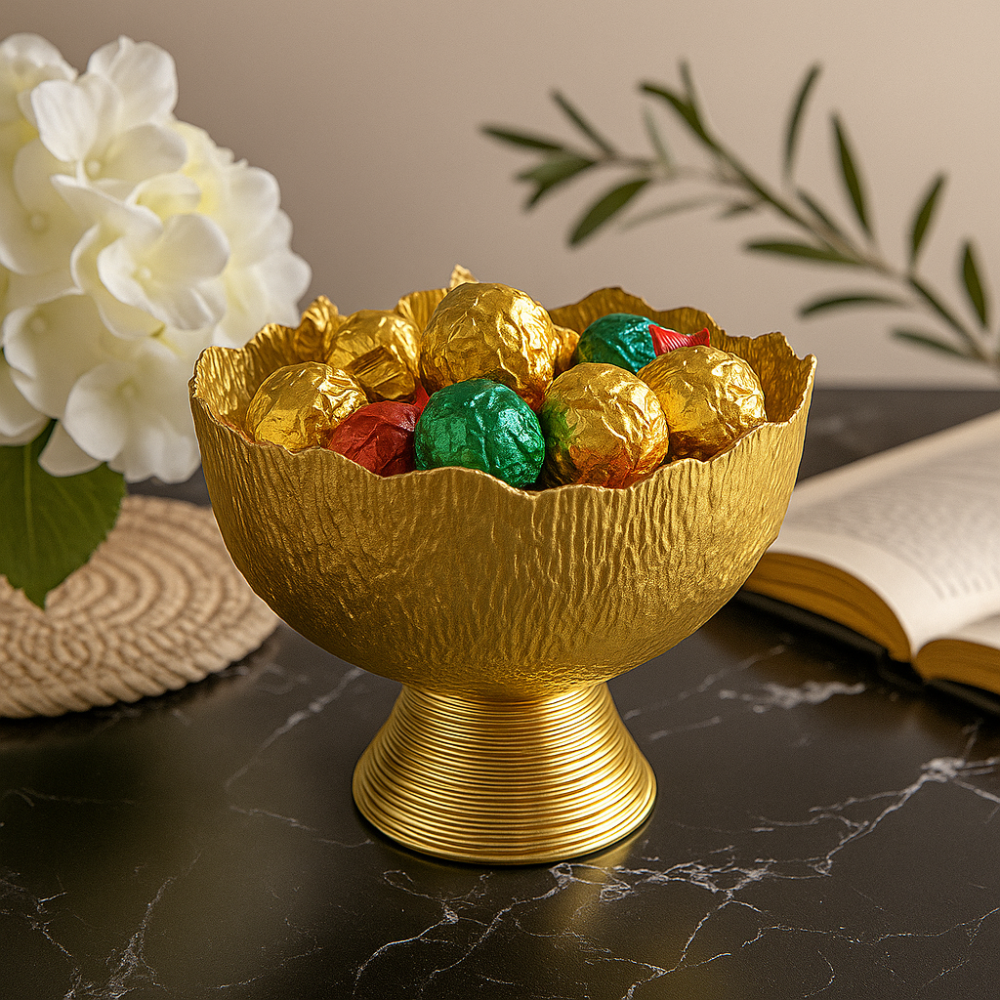 Enhance the elegance of your tableware with this stunning serving platter. Designed with a modern touch in gold, it's made from high-quality materials to ensure durability and can be easily cleaned. Use it for serving desserts, pies, or filling it with ready-made desserts or other treats.