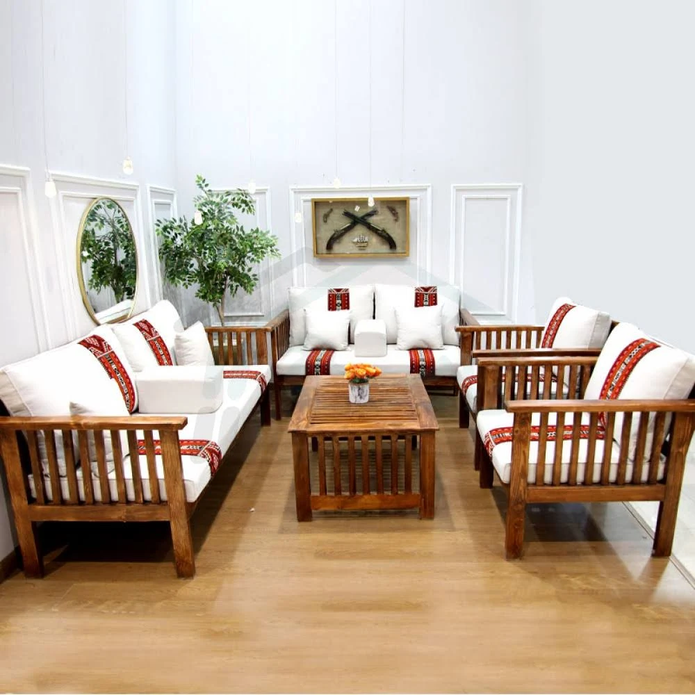 A set of seven chairs made of fine wood to add beauty to your outdoor seating.