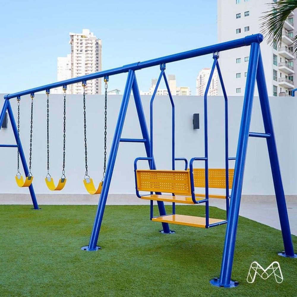 The swing and swing chair is one of the most popular and admired playground toys for children and adults. It combines fun and entertainment with the joy of movement, making it safe and enjoyable for children to play outdoors. The sturdy construction ensures your children play safely. Please note that there may be slight differences in color or design concepts from the images.